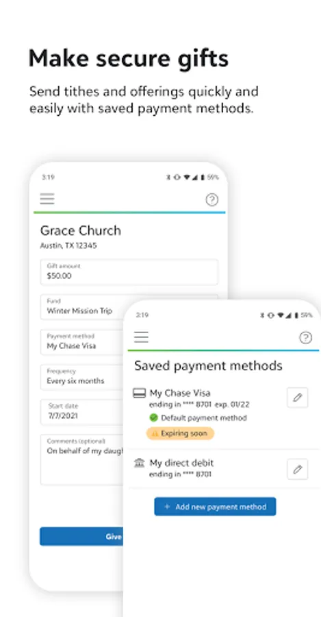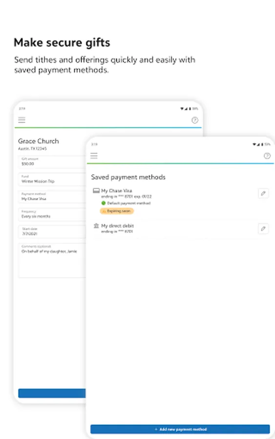 Faith-focused giving has never been easier with MobileMission™, your church’s digital front door. Easily and securely send tithes and offerings to your church from your phone—anytime, anywhere.
