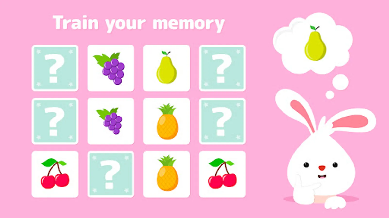 Memory game: is to find the same pairs of cards, is an excellent activity to exercise the memory of your children. It also has three levels of difficulty to challenge memory and concentration.