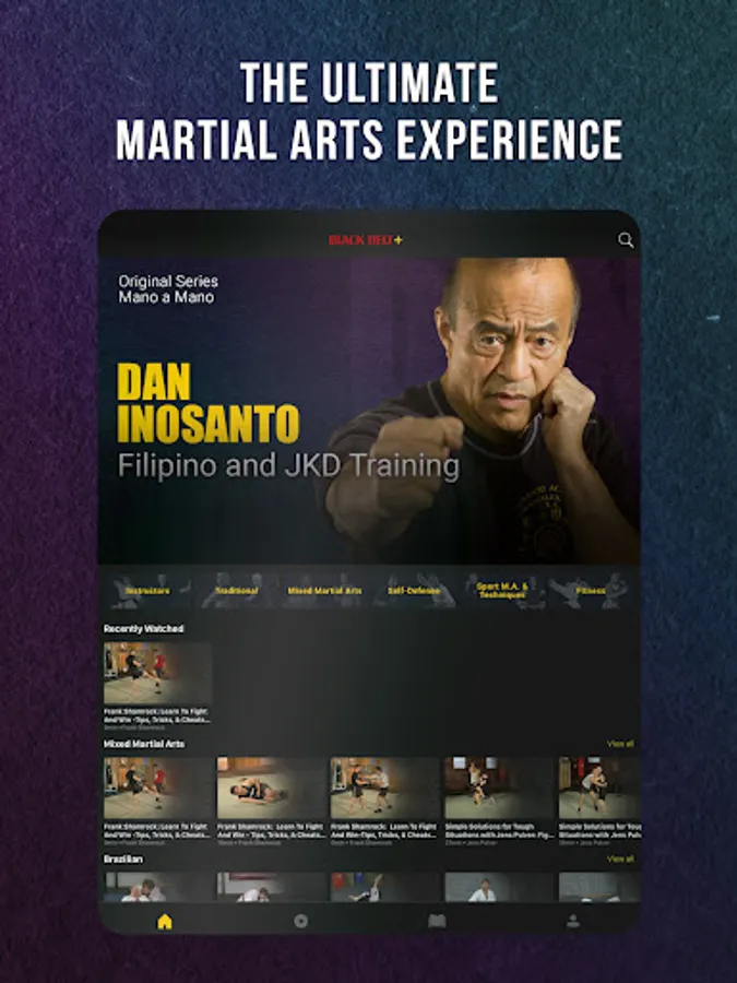 Black Belt+ features training courses from world-renowned experts in a diverse range of styles, including Japanese Okinawan, Kenpo, Korean, Muay Thai, Filipino, Jeet Kune Do, and Brazilian Jiu-Jitsu.