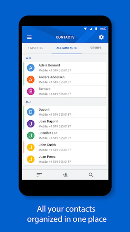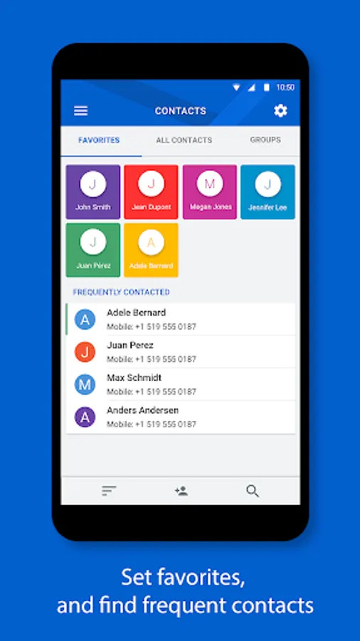 • Fully supports Android Enterprise deployment and, when allowed by your administrator, supports unifying your personal and work contacts while maintaining strict data storage separation