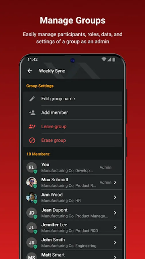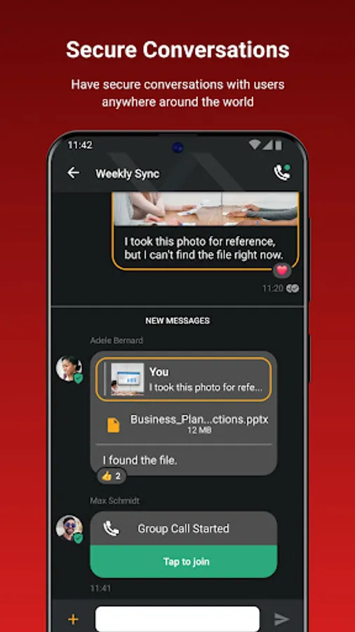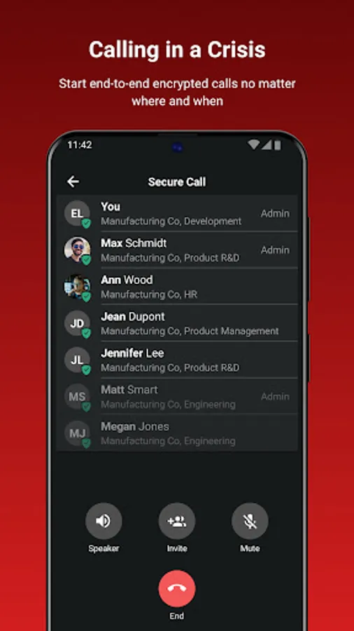 • Secure group voice calls with an existing group, or create a new group with those you need to speak with now