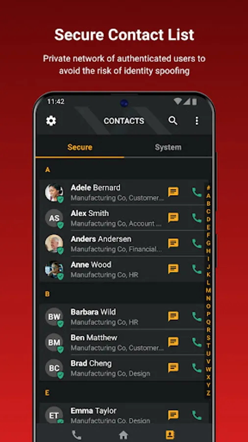 • Voice and message communication secured with strong data-in-transit (DIT) and data-at-rest (DAR) encryption