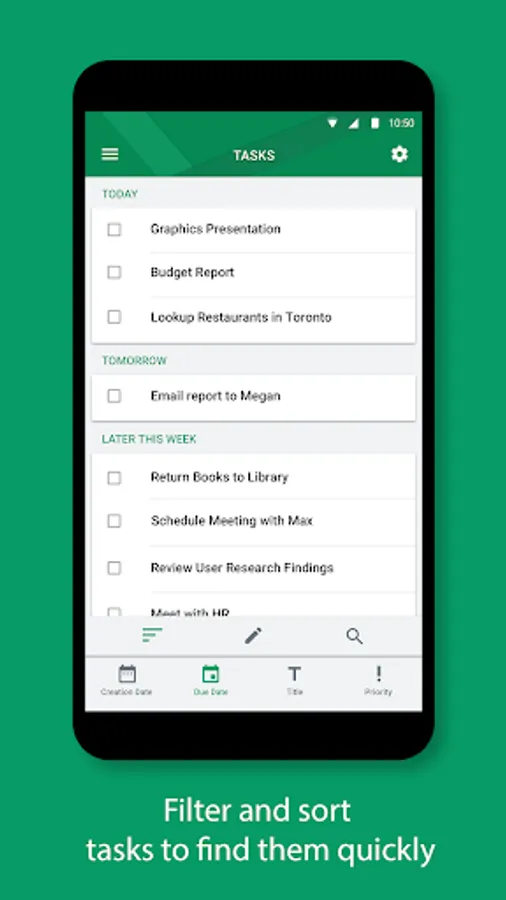 • Sort your tasks by due date, priority, or creation date