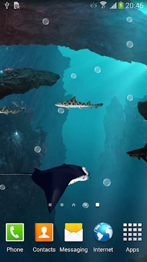 3D Sharks Live Wallpaper. HD background, 3D sharks and mantas, live water effect, lots of settings and effects will give you realistic feeling of being immersed in an deep underwater oceanic world.