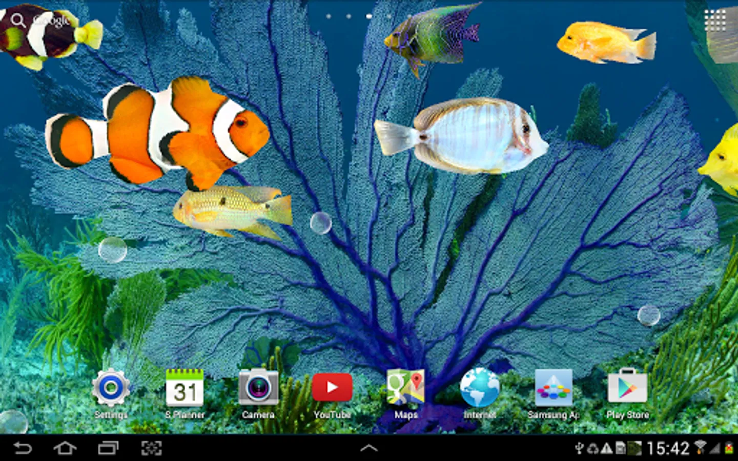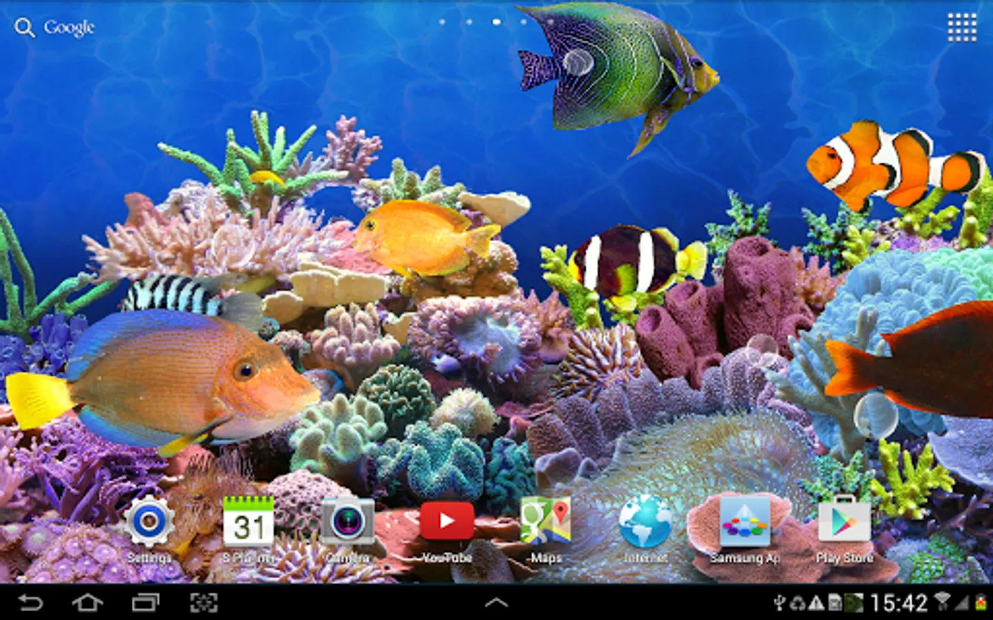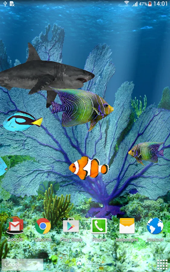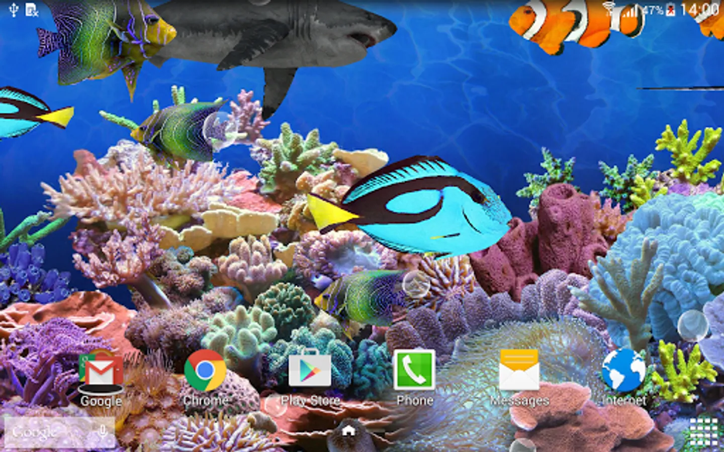 Now you can turn your phone or tablet into real aquarium. Blue, azure water, exotic fish, coral reefs, lowly sailing sharks, it is impossible to take your eyes off.