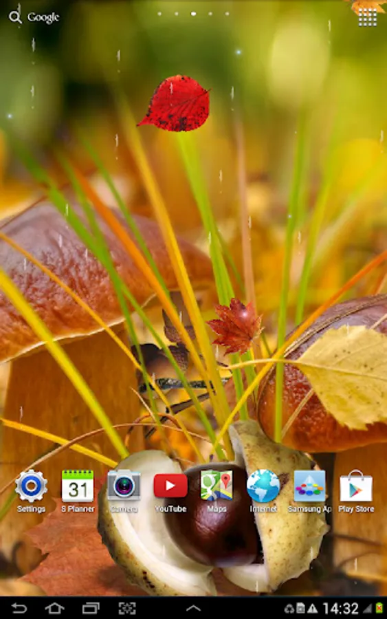Free autumn live wallpaper. Install it now and feel all the beauty of autumn: falling leaves of red, yellow, orange colors, warm mushroom rain, effect of live water and much more. Lots of backgrounds, effects and settings will help you to craft your own special autumn live wallpaper =)