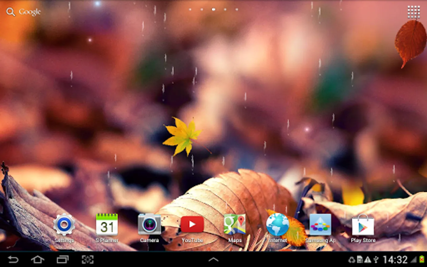 This live wallpaper with animated rain and leaf fall has been tested and looks great on latest devices such as Samsung Galaxy S4, Samsung Galaxy Note 3, Nexus 7, Sony Xperia Z