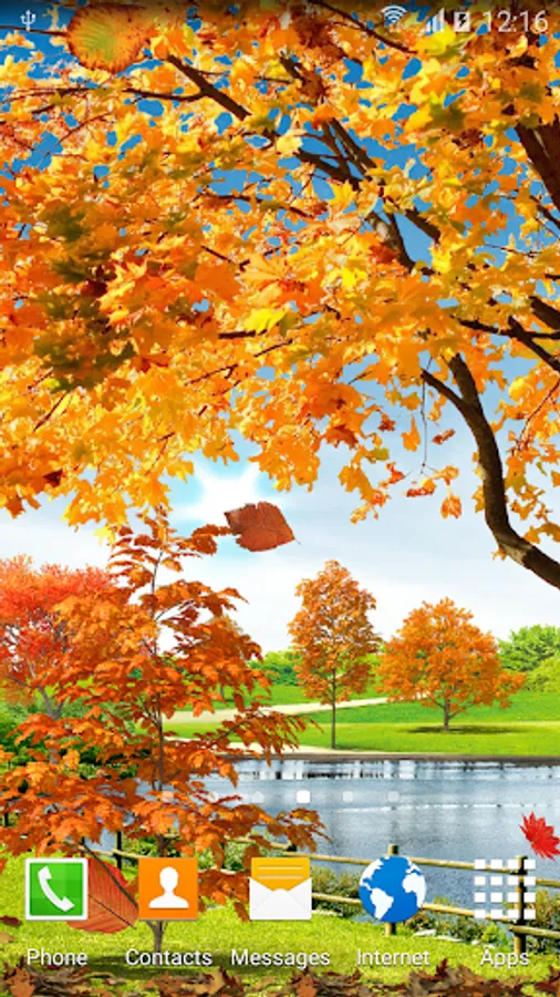 Autumn pond live wallpaper - beautiful animated screensaver with sunny autumn landscape, with live water effect on pond surface, with falling red, orange, yellow 3D leaves, with animated clouds ad much more. Install this free live autumn wallpaper and enjoy all the beauty of the sunny autumn day.