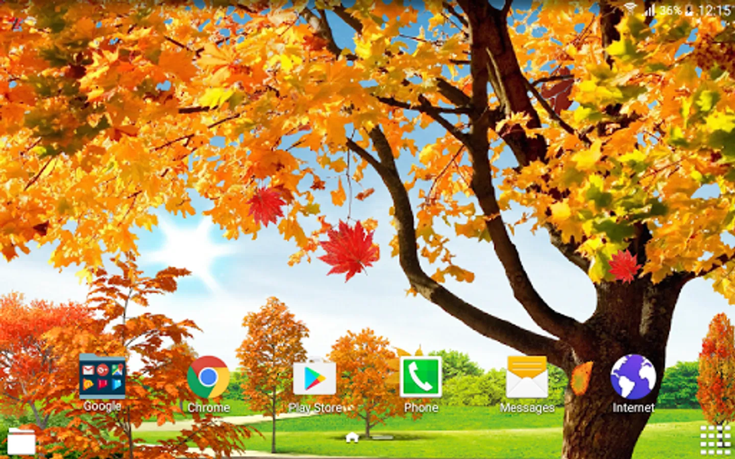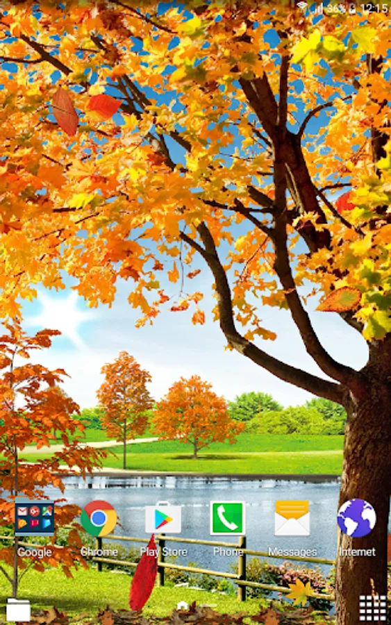 How to set free autumn live wallpaper on the screen of your phone: Home → Applications → Settings → Display → Wallpapers → Home screen wallpaper → Live wallpapers → Autumn Pond Live Wallpaper