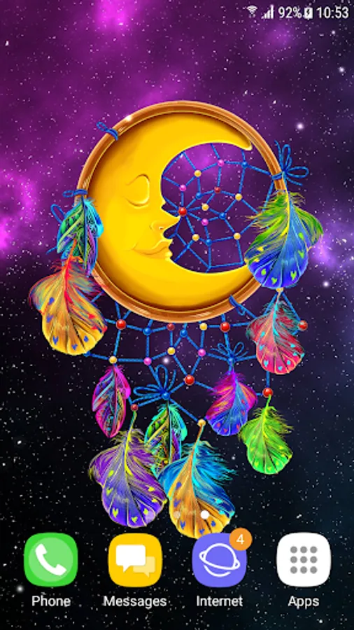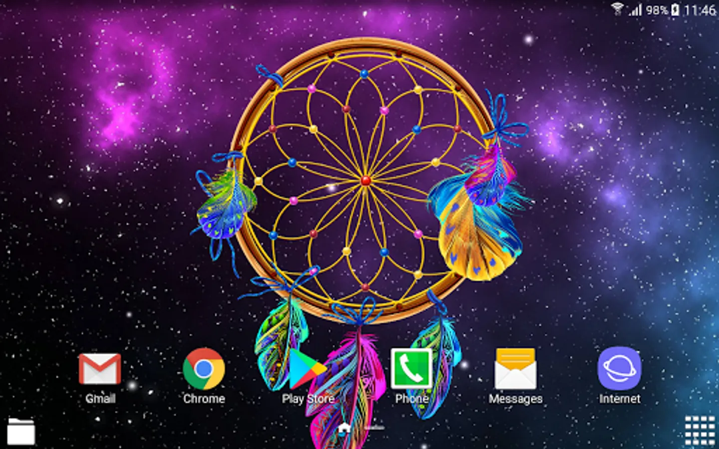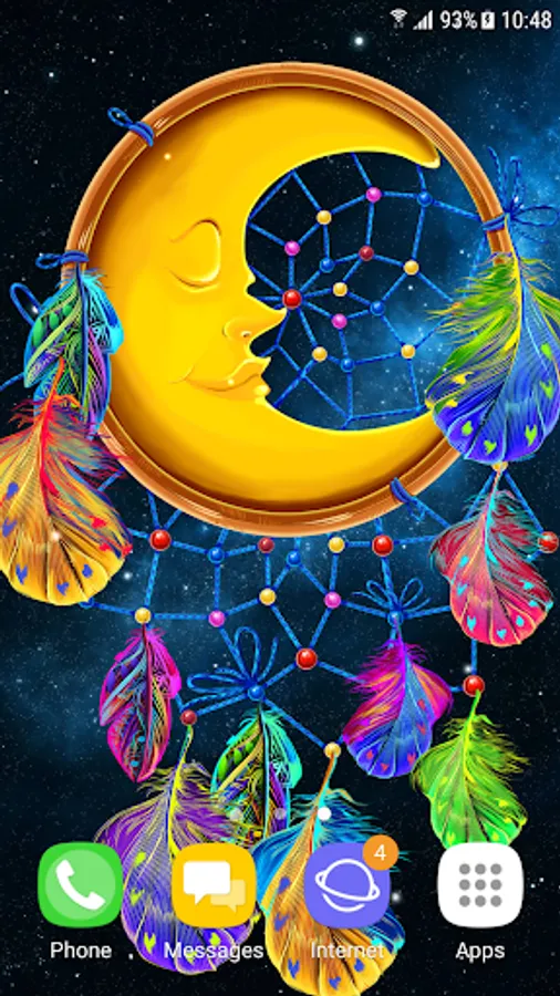 How to set this free live wallpaper with animated dreamcatcher on the home screen of your phone: Home → Applications → Settings → Display → Wallpapers → Home screen wallpaper → Live wallpapers → Dreamcatcher Live Wallpaper