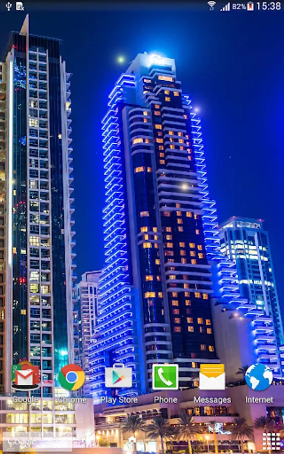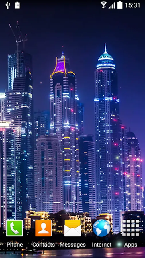 How to set this free wallpaper with night Dubai landscapes on the home screen of your phone: Home → Applications → Settings → Display → Wallpapers → Home screen wallpaper → Live wallpapers → Dubai Night Live Wallpapers