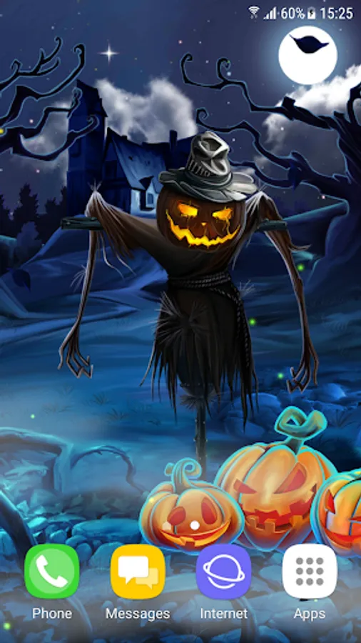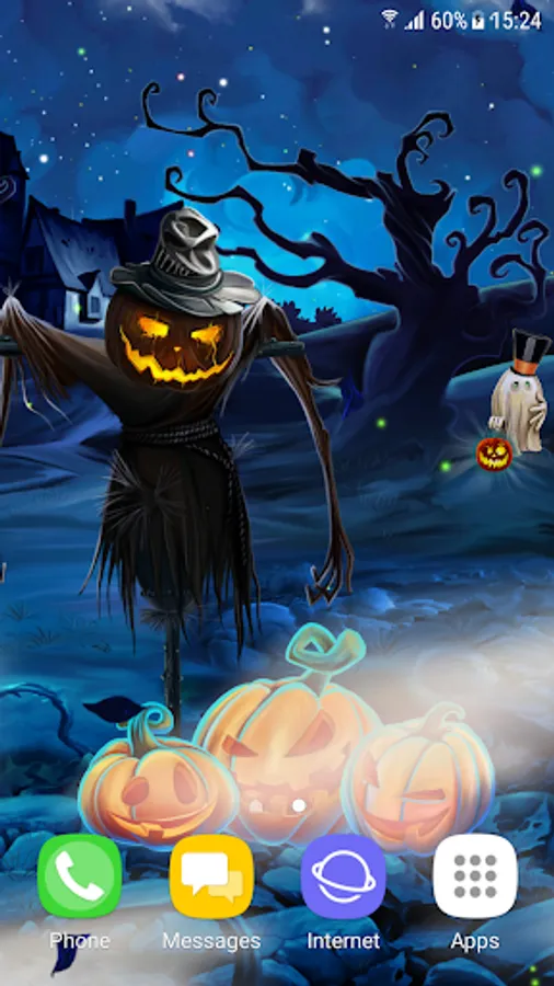 How to set this dynamic Halloween screensaver on the screen of your phone: Home → Applications → Settings → Display → Wallpapers → Home screen wallpaper → Live wallpapers → Spooky Halloween Live Wallpaper