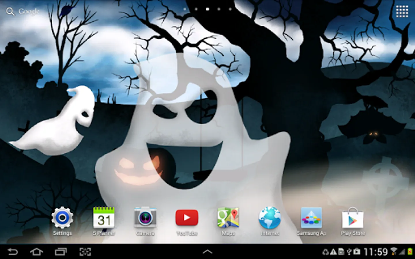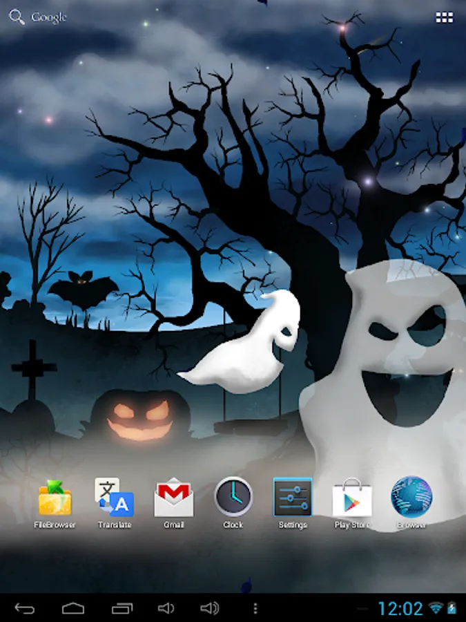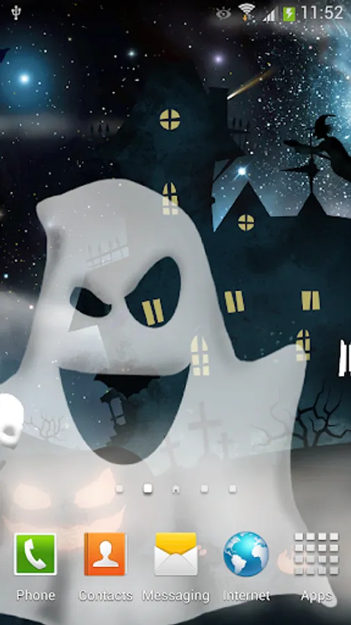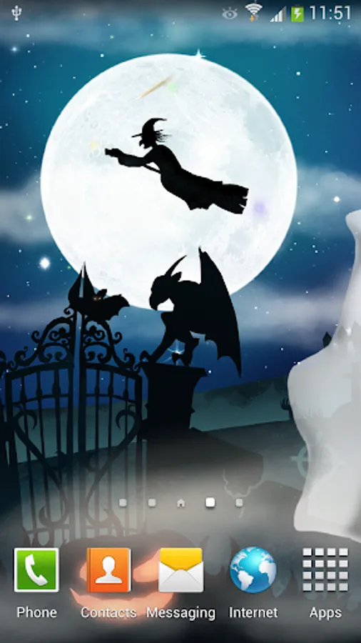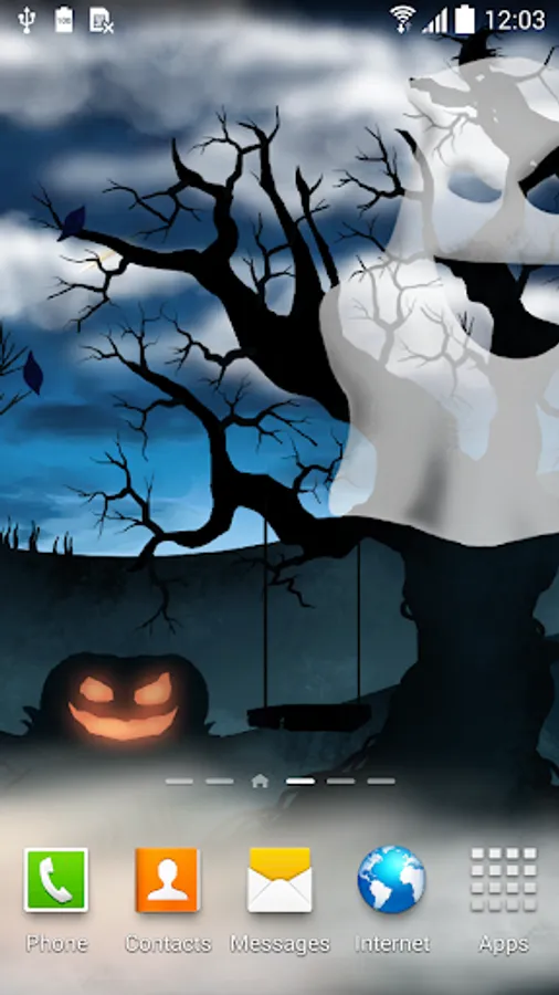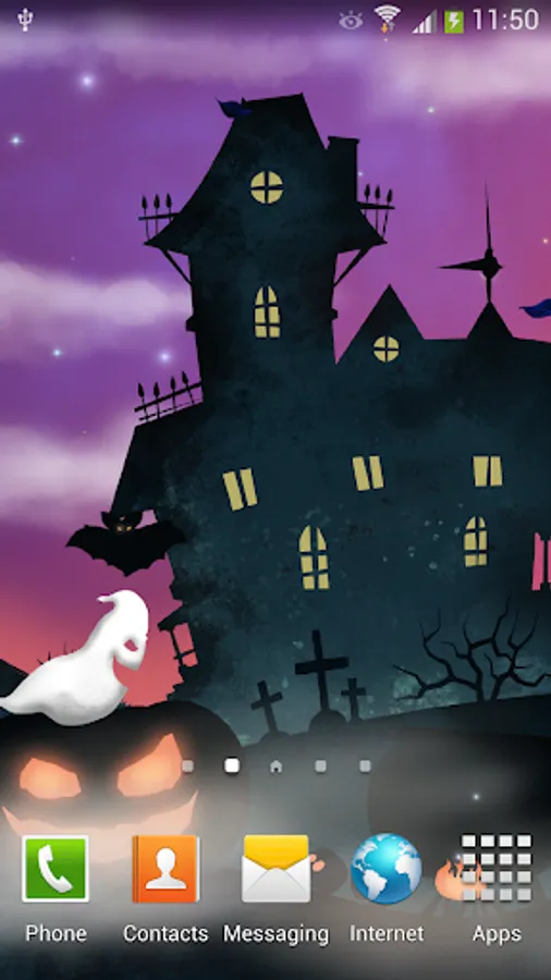 How to set dynamic halloween screensaver on the screen of your phone: Home → Applications → Settings → Display → Wallpapers → Home screen wallpaper → Live wallpapers → Halloween Night Live Wallpaper