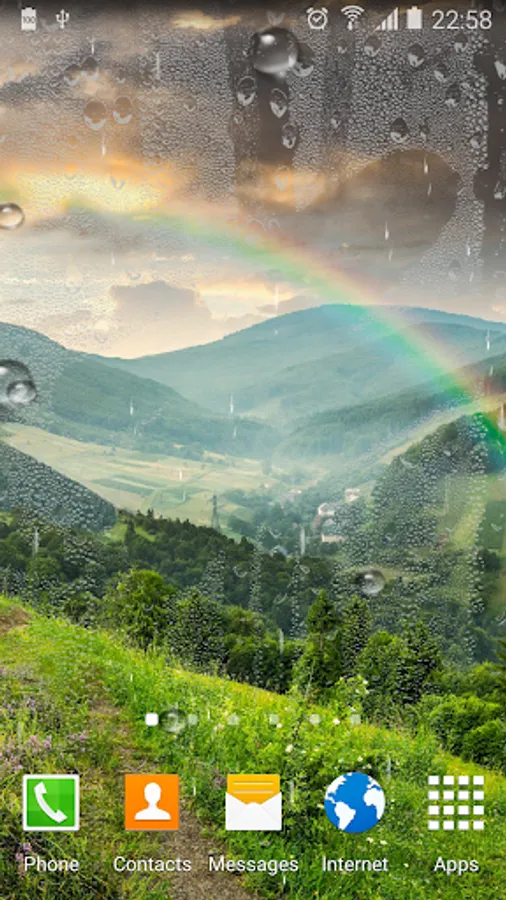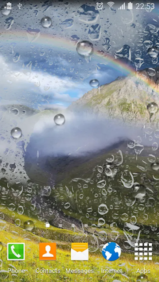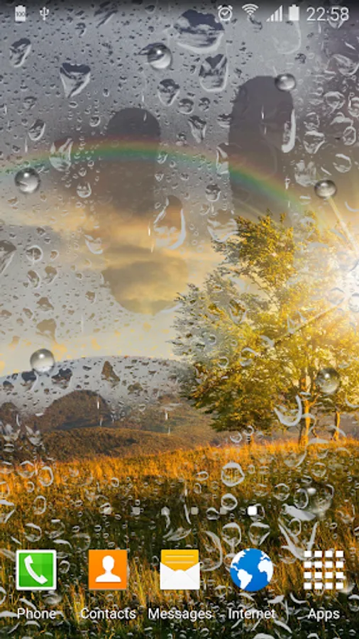 Rainbow live wallpaper – beautiful free live wallpaper with rainy effect that simulates raindrops falling over your screen, steamy window effect (you can draw signs on the steamy window), set of HD backgrounds with rainbow, animated rain drops on window, tons of settings and much more.