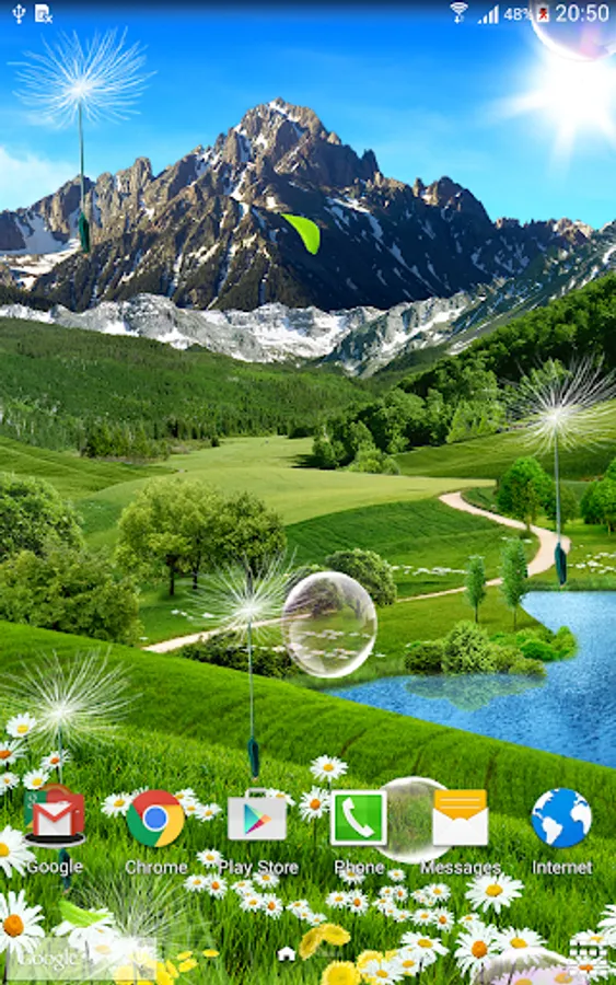 Summer landscape live wallpaper – beautiful free animated screensaver with beautiful summer mountain landscape, falling leaves, iterative flying dandelion seeds, animated clouds and much more. This free summer live wallpaper is an excellent choice for summer time. Download it for free now and enjoy all the beauty of calm sunny summer day on the mountain flower meadow.