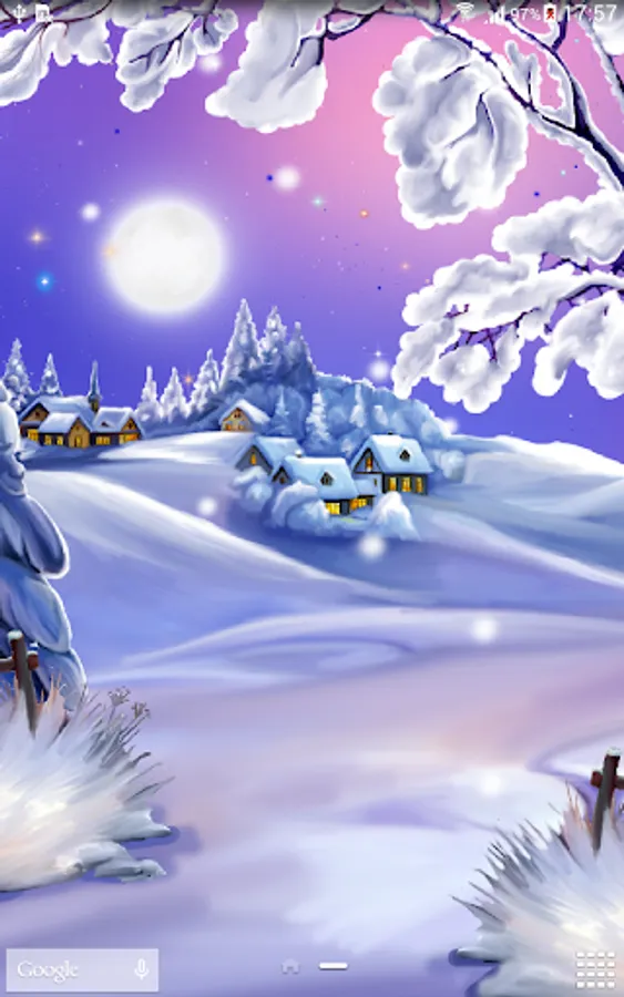 How to set free winter live wallpaper on the screen of your phone: Home → Applications → Settings → Display → Wallpapers → Home screen wallpaper → Live wallpapers → Winter Landscape Live Wallpaper