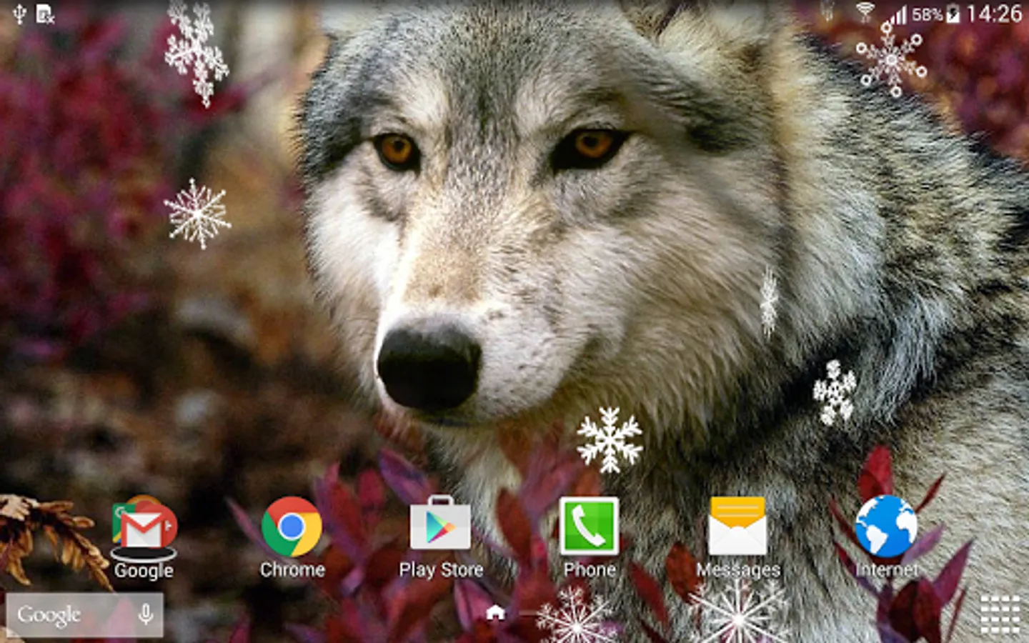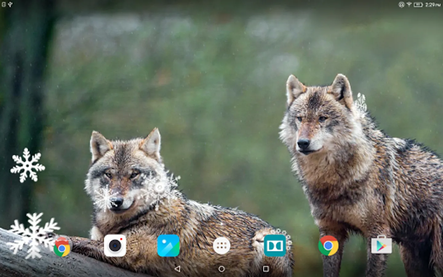 Wolves live wallpaper - beautiful animated screensaver with a set of HD pictures with wolves and amazing dynamic effects: live water effect (water droplets), 3D snowfall and autumn leaf fall, misted and frozen window effect on which you can draw with your finger, sparks and twinkling lights, fireflies and many others. Install this free live wallpaper is now it will be a great decoration of your Android phone or tablet.