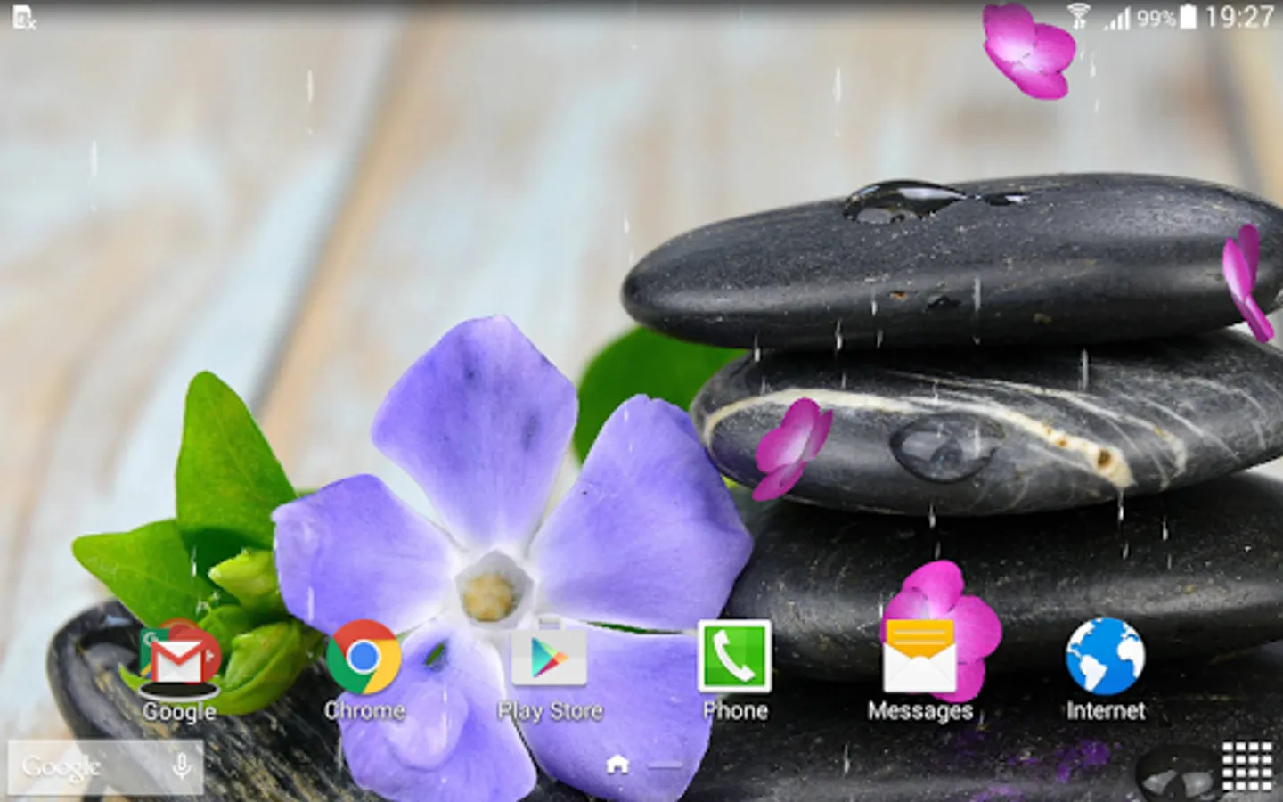 How to set this oriental live wallpaper with falling 3D sakura petals on the screen of your phone: Home → Applications → Settings → Display → Wallpapers → Home screen wallpaper → Live wallpapers → Garden Zen Live Wallpaper