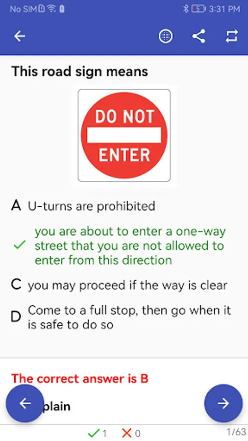 Every question in this App has an explanation for its answer, to let you know know why it's correct or wrong. We believe this is the best way for learning and strenthen your understand to driving knowledge.