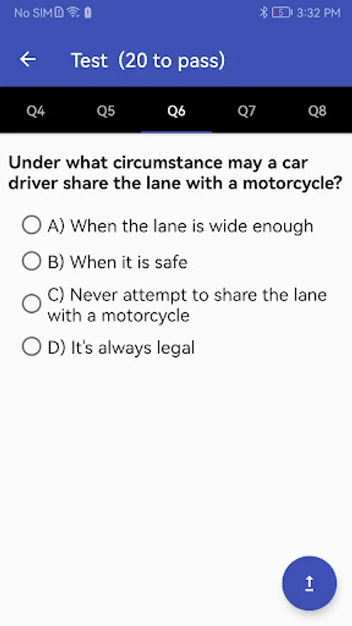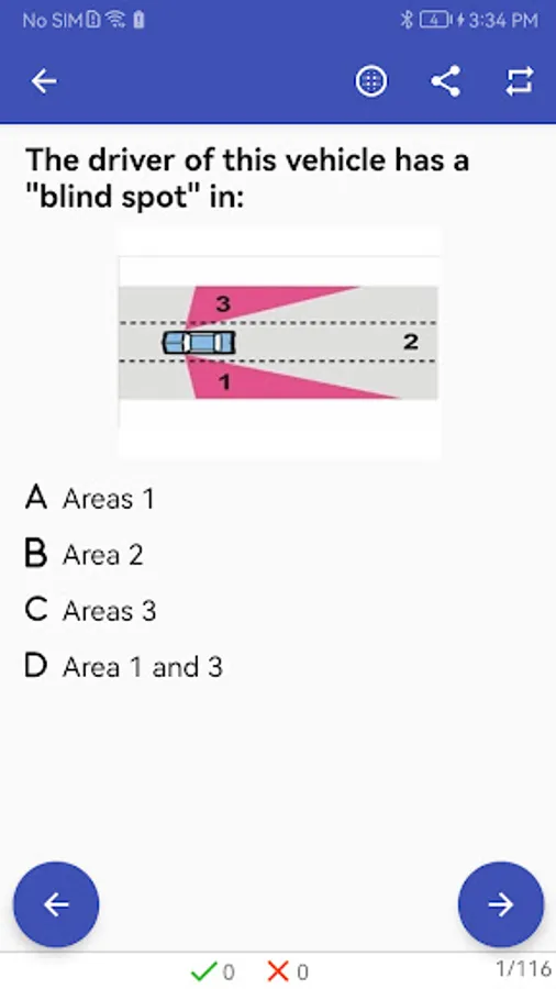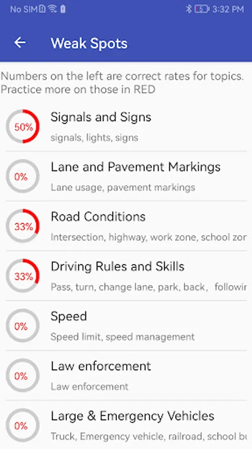 Knowledge questions are assigned to sections and topics based on Driver's Manual. You can choose certain sections or topics to practice.