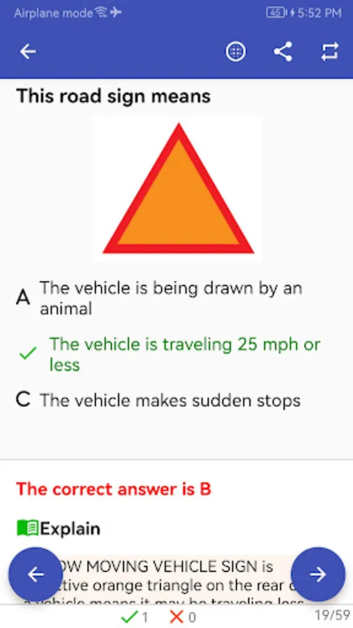 Every question in this App has an explanation for its answer, to let you know know why it's correct or wrong. We believe this is the best way for learning and strenthen your understand to driving knowledge.