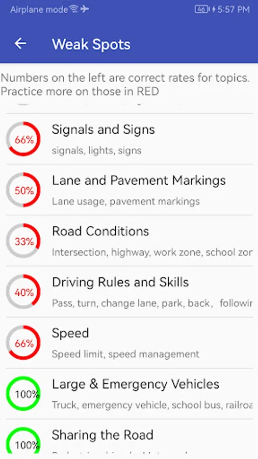 Also, all your practice test results are saved. You can easily find your weak spots.
