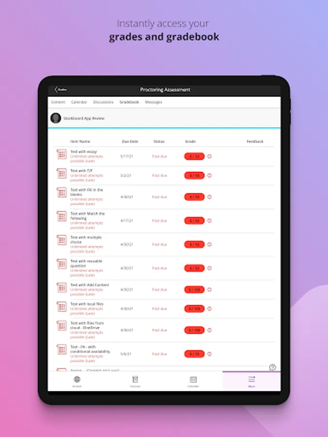 • View grades for courses, assignments and tests