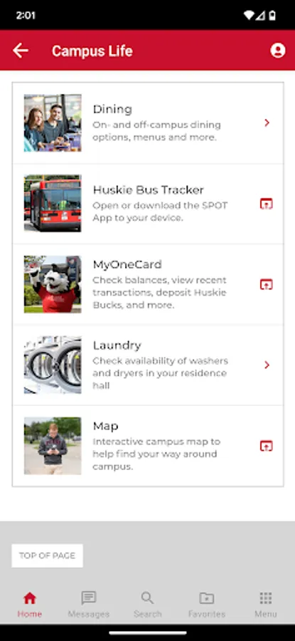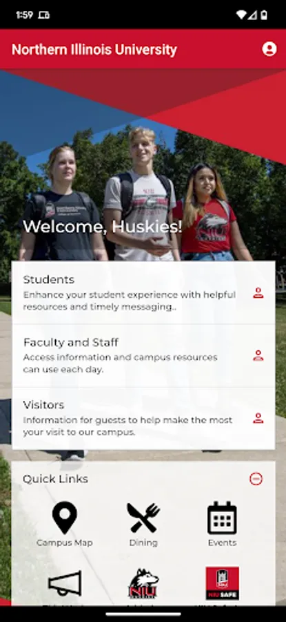 The NIU Mobile app provides links to everything from campus resources, event calendars, tech help and residence hall laundry machine status updates to emergency information, campus maps, social media and more.
