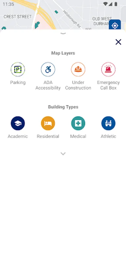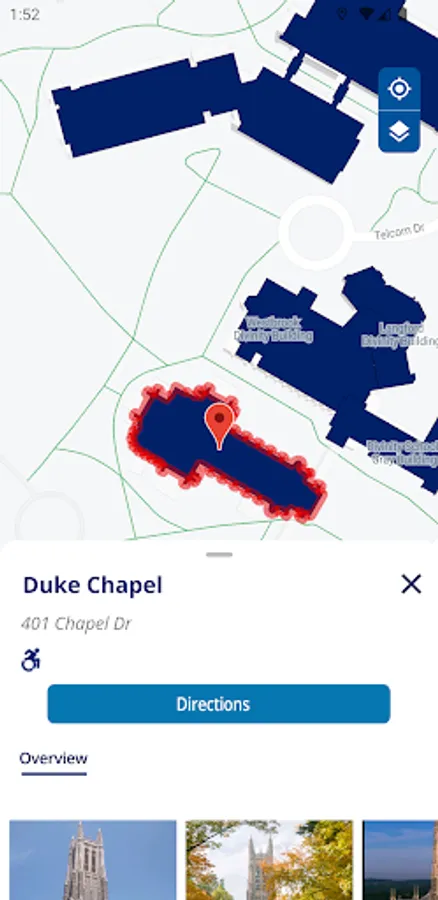 · Maps — Search for Duke buildings by name, pinpoint them on the map and see your relative location, and zoom or pan across the map using the multi-touch interface