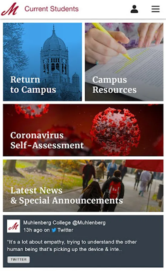 Get iMuhlenberg and keep up to the minute with Muhlenberg College from your mobile device. The iMuhlenberg app allows you to: