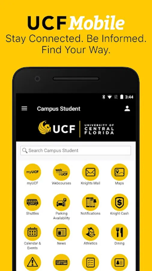 Students who attend or visit a UCF Campus. This experience includes many favorite Orlando Campus features such as parking, shuttles, maps, and dining but also include myUCF, access to Webcourses, Knights Mail, and more features for all UCF students on every campus.