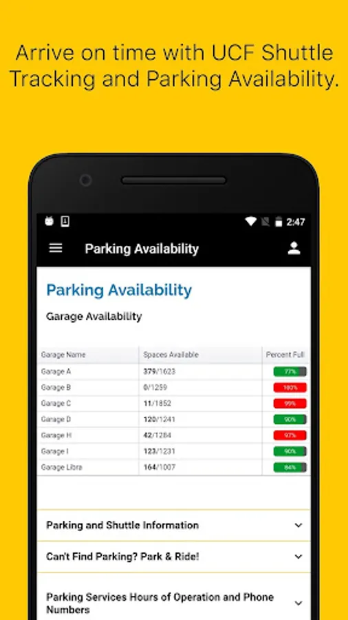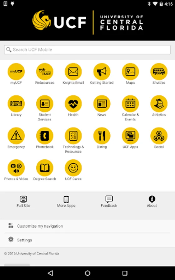 UCF Mobile includes many features to keep you connected while on-the-go. Below is a list of a few resources and services to make the most of the app.