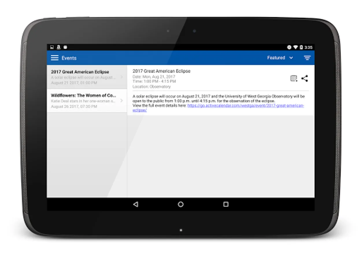 The GoUWG App brings campus to your fingertips and enables you to connect with the UWG community: Stay on top of your events, classes, and assignments with the built in calendar function, and get notified of important dates, deadlines & security announcements. Make friends, ask questions, and access campus resources at any time!