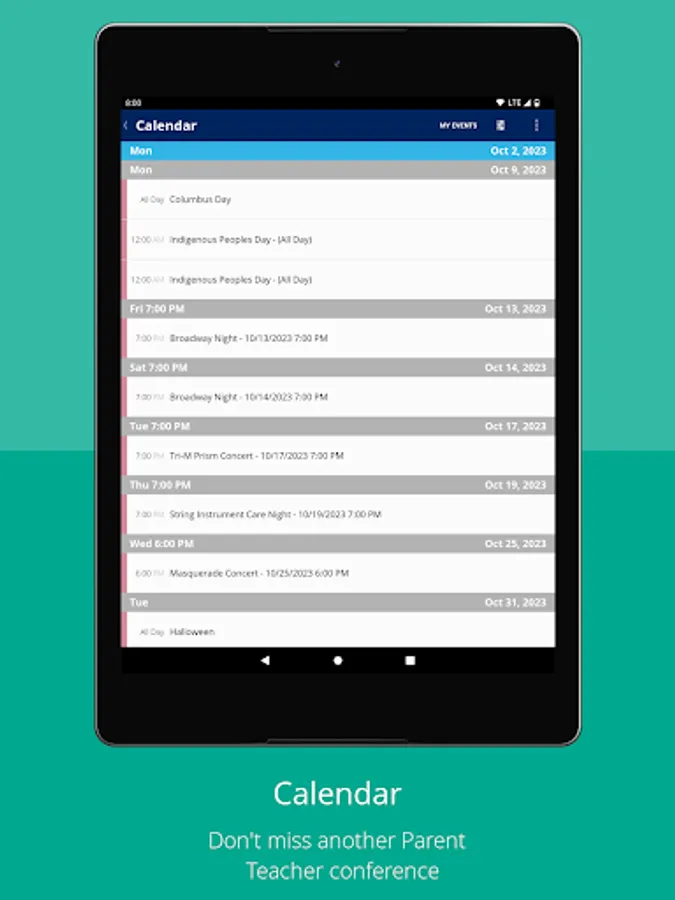 · Calendar information for schools and district events, including the ability to add events from school calendars to the user’s device calendar