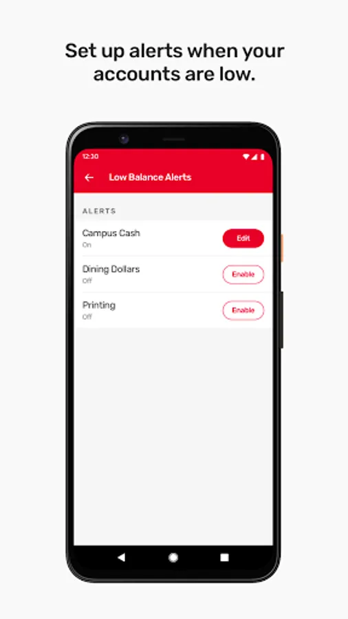 For users at participating campuses and institutions, eAccounts mobile makes it easy to view account balances, add money and track recent transactions. At select campuses, users can now add their ID card to the eAccounts app to access places like your dorm, the library, and events; or pay for laundry, snacks, and dinners using their Android phone.
