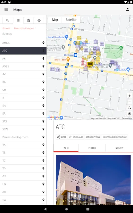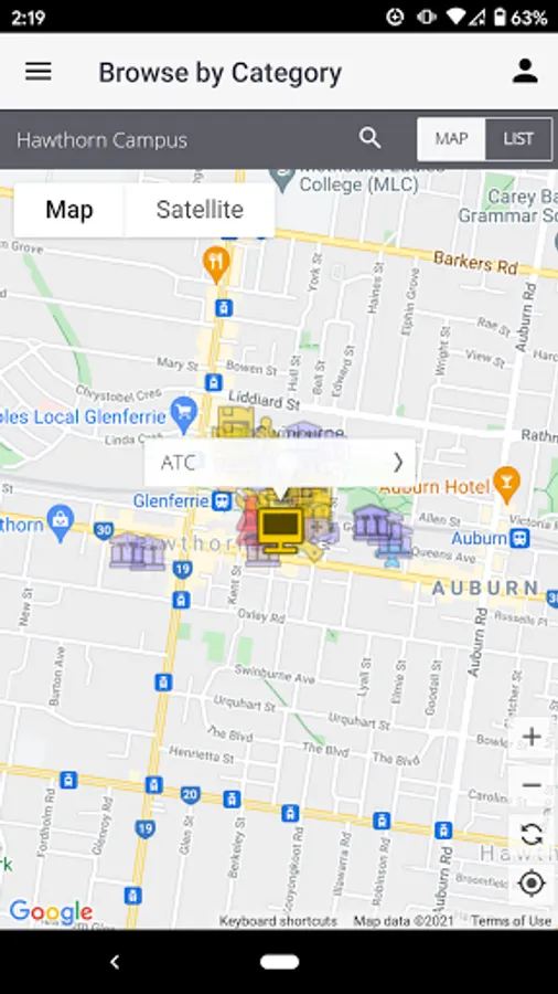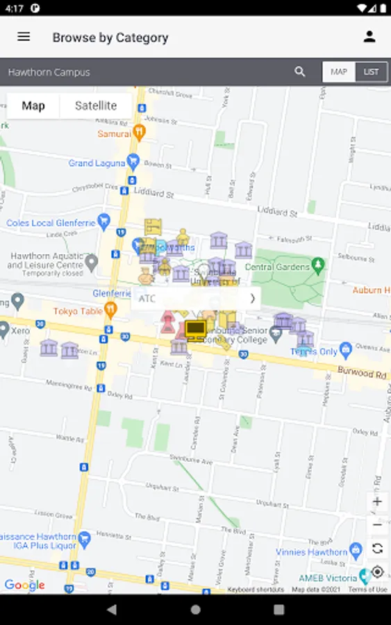 • Find places to eat, park, and study in Hawthorn