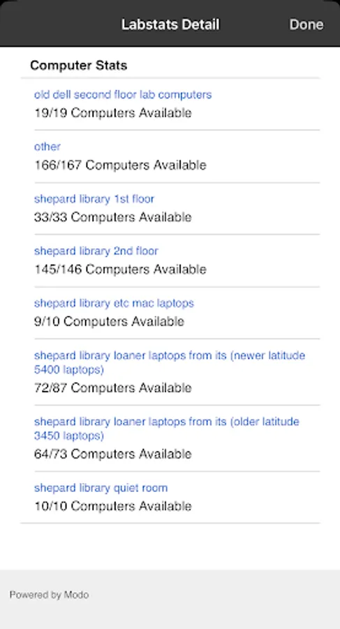 • Want to know how many computers are available in a lab before heading over? Get a quick view of the total number available at the Shepard Library or dive down deeper to see individual labs around campus.