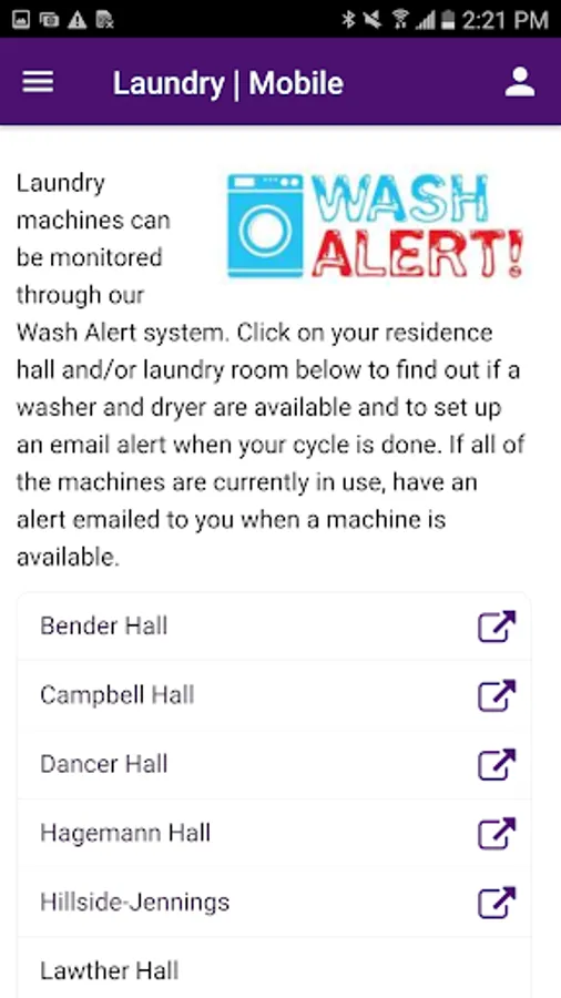 Laundry—Check when washers and dryers are available in your dorm, and receive email alerts when your laundry is done.