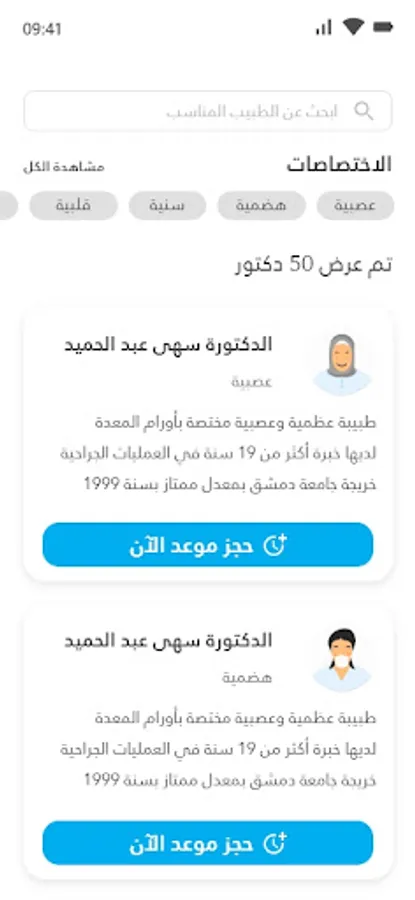 ويقدم صلة أيضاً خدمة البحث عن الطبيب وذلك بناء على التخصص وحجز موعد مسبق، مع ضمان حجز الموعد ضمن العيادة أو الحصول على موعد ضمن منزلك، وذلك للحصول على رعاية طبية تناسب احتياجاتك.
