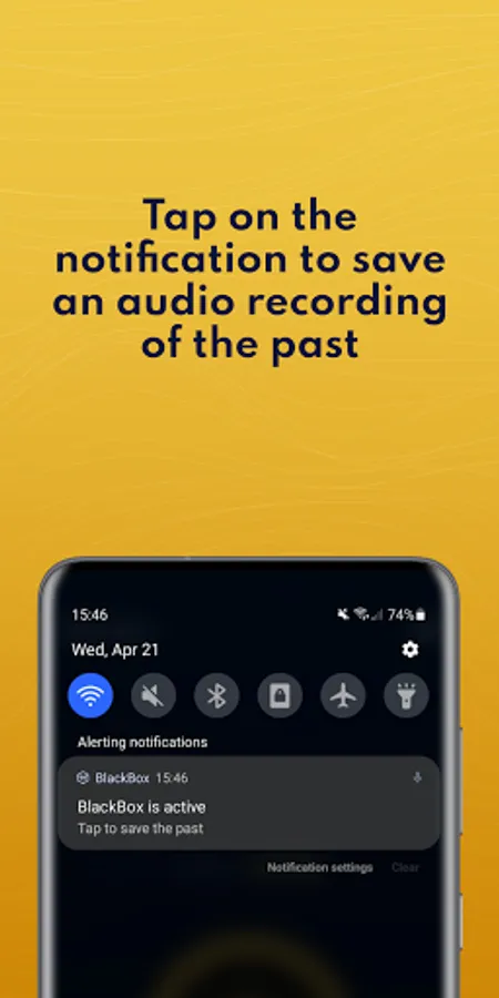 ⬛ RECORD THE PAST: BlackBox - Past Recorder provides a lightweight, discreet way to save up to one hour of audio from your phone’s microphone history by a simple tap on your screen.