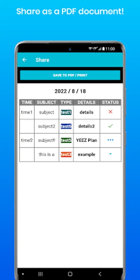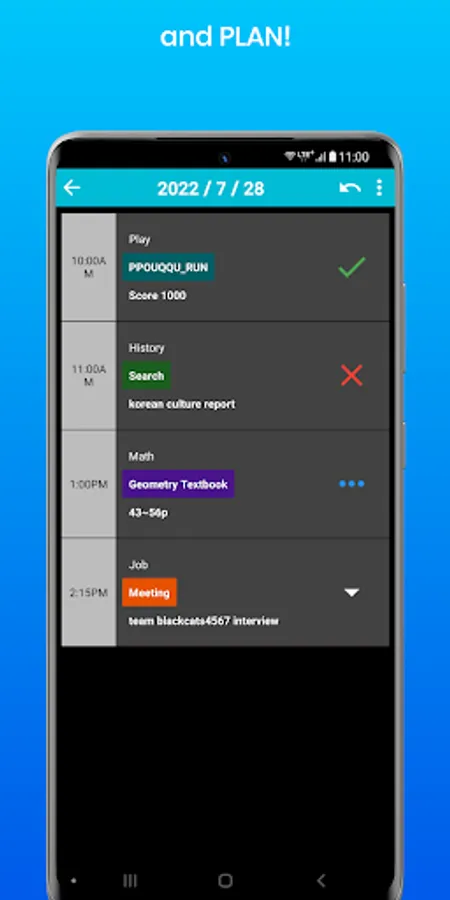 This app can be used to write down your schedule in detail or to create a study plan. This app is specialized for creating study plans. You can also share or get back your own schedule.