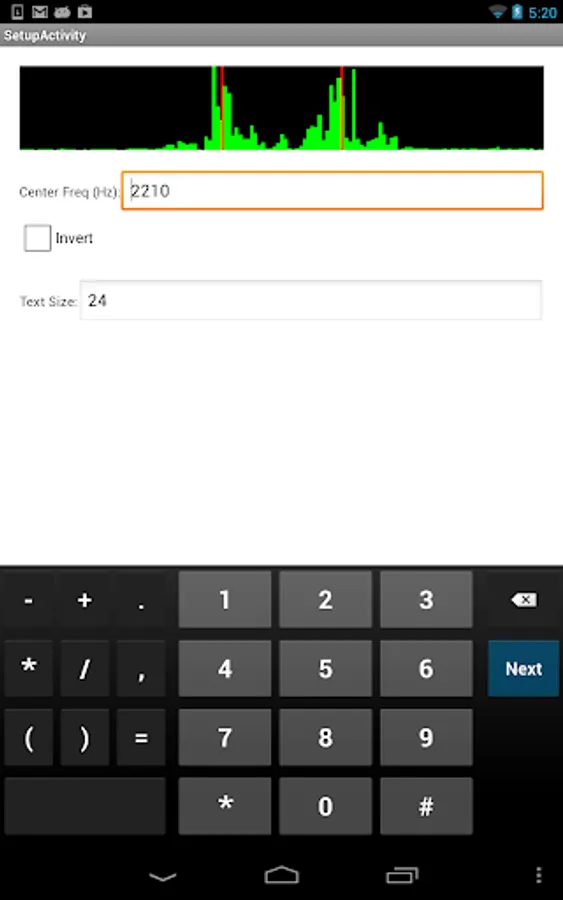 Most NAVTEX transmissions are on 518 kHz. If you tune in to NAVTEX via USB mode, set your radio to 515.8 kHz USB, set the frequency in the app to 2200 Hz, turn off invert mode, and when the next scheduled transmission begins, NAVTEX pad will start decoding.