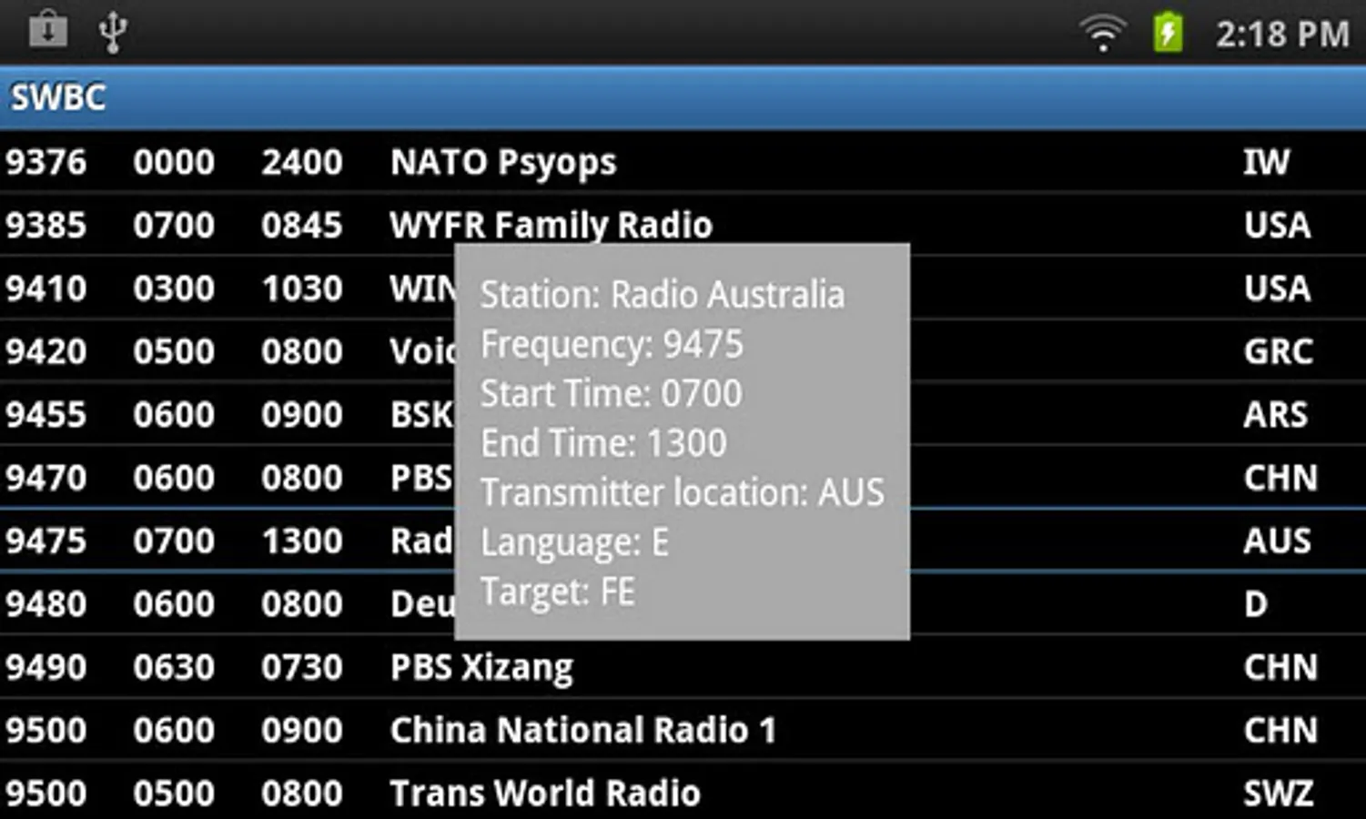 Shortwave Broadcast Schedules is a handy app that displays broadcast schedules of over 10,000 longwave, mediumwave, and shortwave broadcast stations.