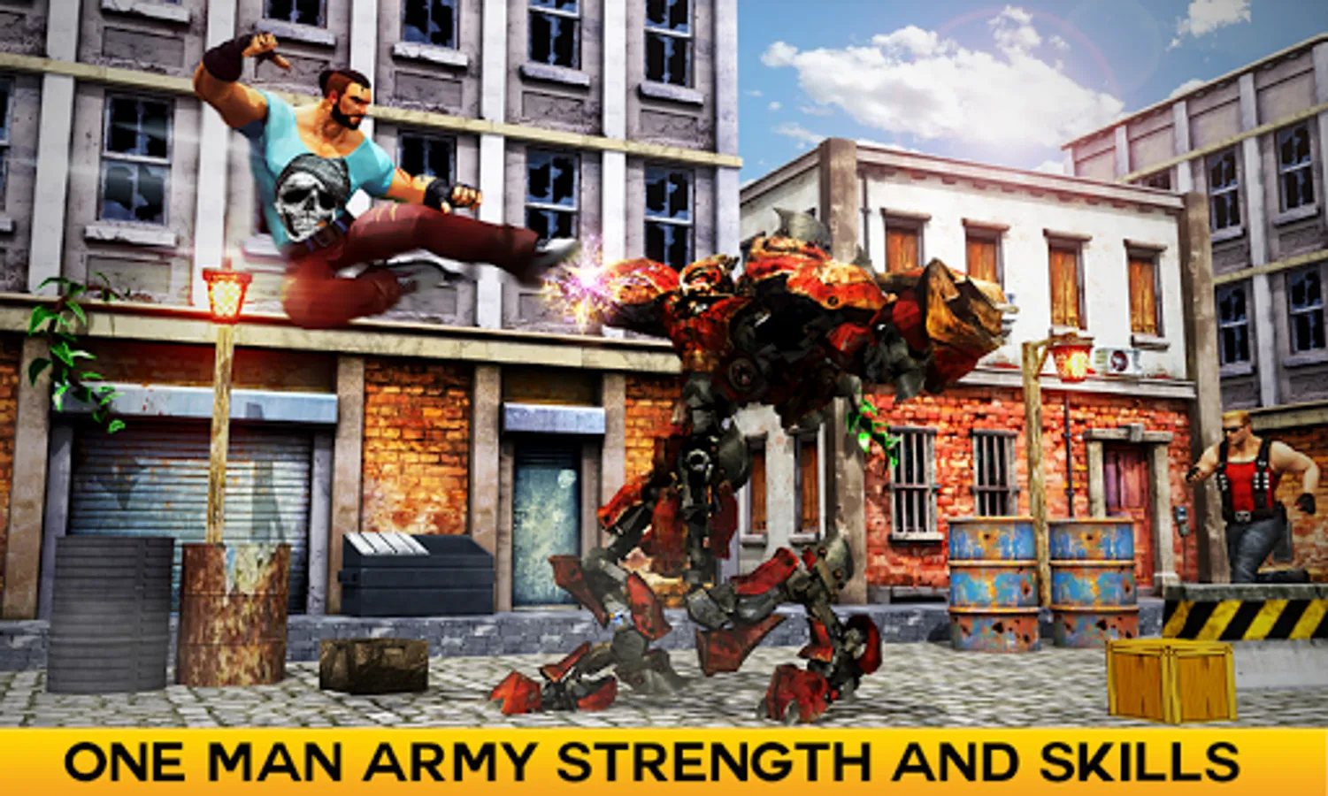 Enjoy street fighting like never before, with an intractable 3d environment and stunning HD graphics. Fight the bad guys and knock out multiple enemies in a one man army battle. Fight multiple gangsters alone and kill gangsters to clear an area. Fight boss class enemies such as killer aliens, warrior robots and devouring monsters. Learn the basics of street fighting combat and master the combat style of each player and perform amazing combos and take down different enemies.