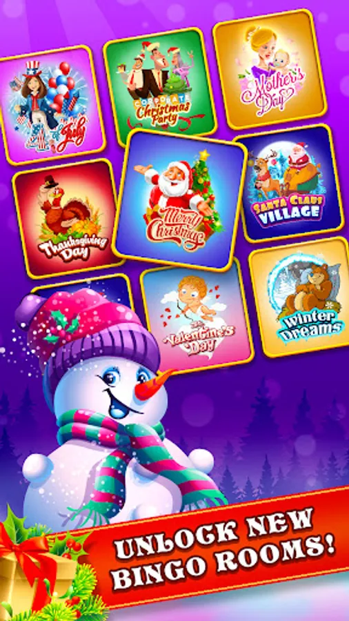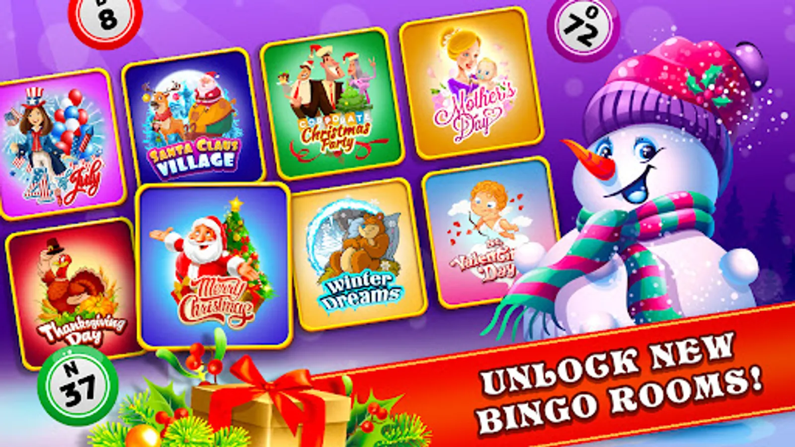 Itβs Christmas time! We can smell it in the air. Save this amazing season & recreate it anytime you want playing your favorite game with the most incredible features in the market. Play offline in those moments while coming back home, play online and experience the real bingo live excitement; stress free guarantee, as the connection wonβt get lost in the middle of a game. Our responsive & quick interface ensures a high quality gaming experience, with stunning Xmas animations, themed bingo cards, gifts, and much more surprises! Pop & classic Xmas holyday music will be playing in the background to complete the Christmas sensation! Earn special trophies & medals as special achievements; with them, youβll be able to unlock more skins & themes like Biker Santa, Shiny nose Rudolph & many other funny animated bingo cards.