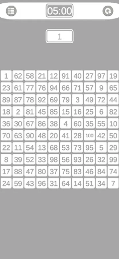 Press on the order of numbers from 1 to 100 for 5 minutes.