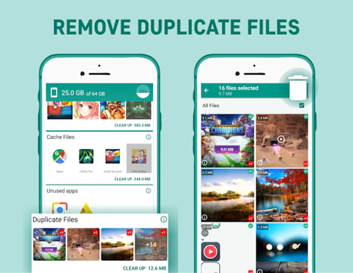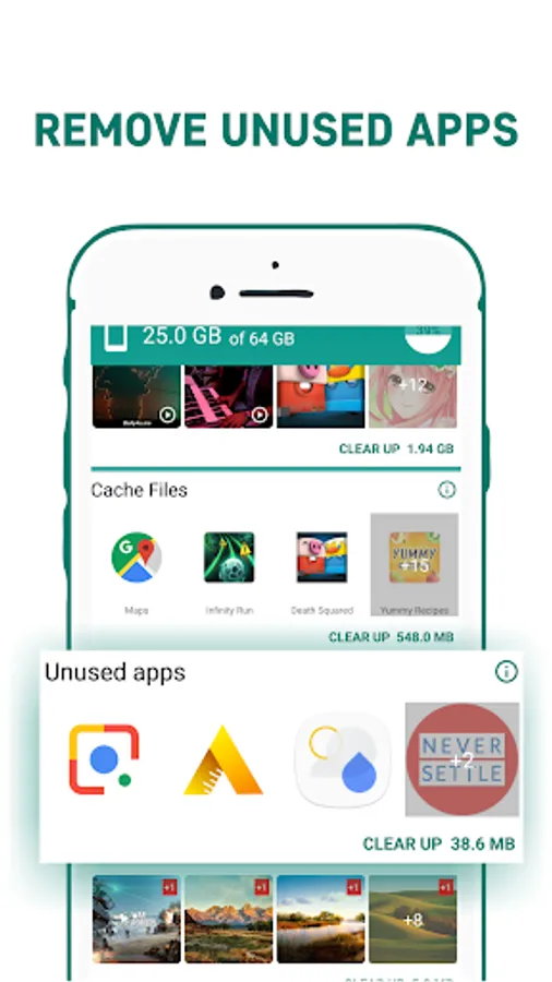 ✔ Get suggestions of which files to delete before you run out storage.