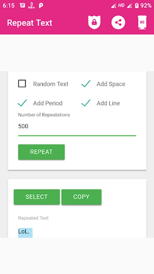 Text Repeater: Add Text, Repeat, Copy and Share!