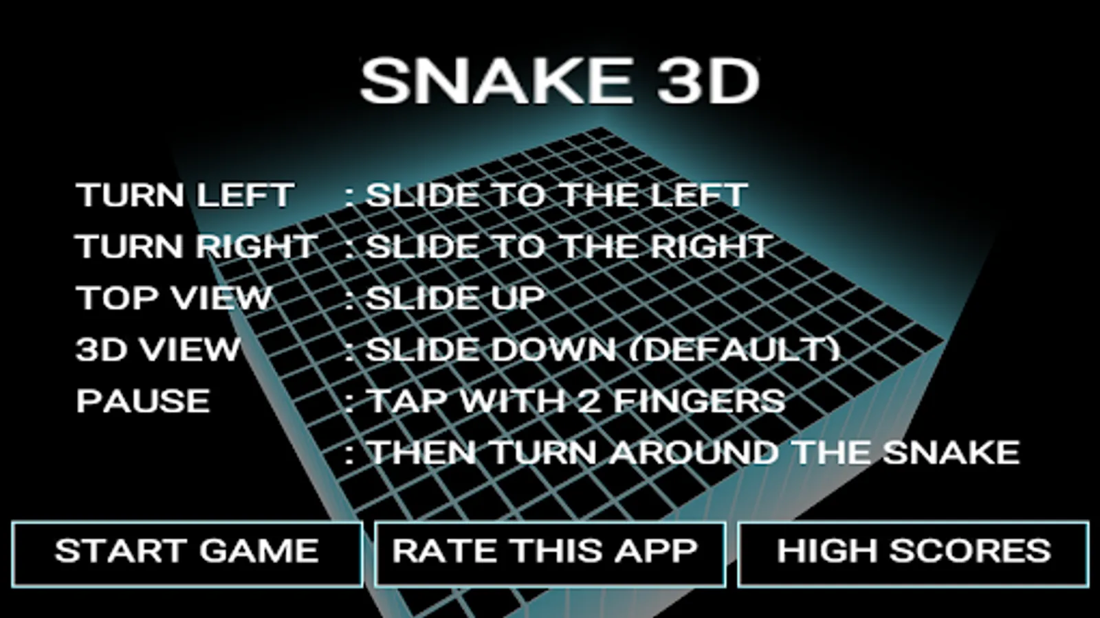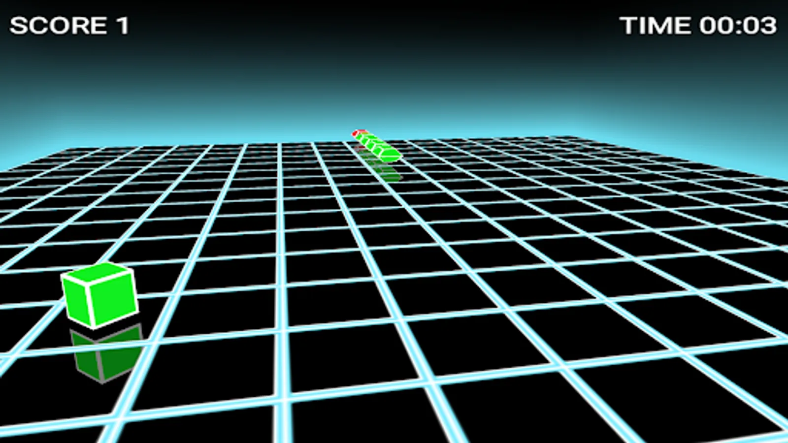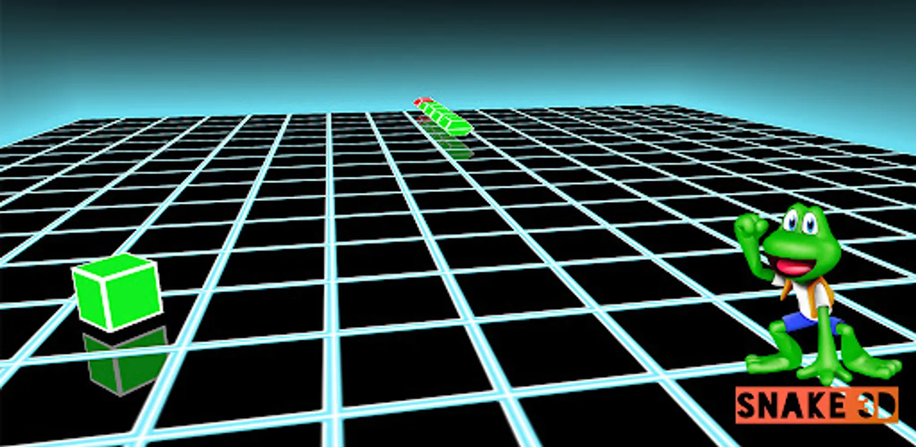C'est le jeu classique du serpent revisité en 3D. Le serpent doit manger la grenouille (le cube vert) ce qui le fait grandir. Il meurt s'il touche un mur ou son propre corps.