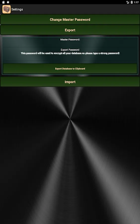 - You can export/import your database through clipboard (copy/paste), so you can send the data by email or paste it in a file as backup.